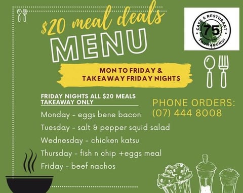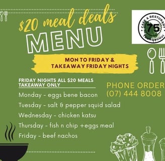 Join us at Cafe 75 for our $20 meals,
